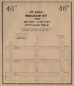 Plan, Plan of Naudain St. from 48th St. to 50th St. 27th Ward, Phila. [Ordinance July 20, 1898; survey returned Aug. 25, 1898; confirmed Sept. 19, 1898], 1898 Original size: 16 x 18 in. (estimated)