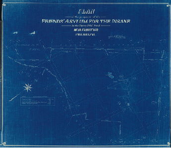 Plan (alternate image), Plan of the property of Friends Asylum for the Insane in the Thirty-fifth Ward near Frankford, Philadelphia , 1892 Original size: 38 x 43 in. (estimated)