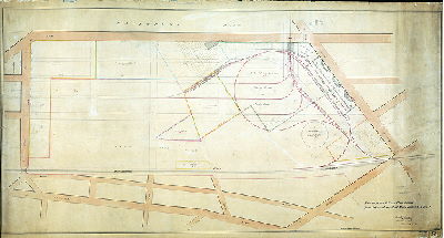 Plan (alternate image), [No title. Plan for passenger railroad station at Elm Avenue and Belmont Avenue. "Between Penna. R.R. and Elm Avenue from Belmont Av. to 52nd Street content is 106 A."], 1872 Original size: 36 x 67 in. (estimated)