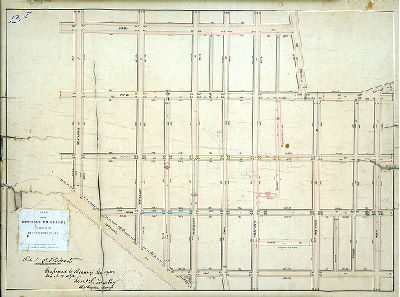 Plan (alternate image), Plan of the revision of grades in a part of the Fifteenth Ward authorized by Act of Assembly June 26, 1871 and resolution of Councils July 11, 1871 [Confirmed by Board of Surveyors March 18, 1872] Original size: 44 x 59 in. (estimated)