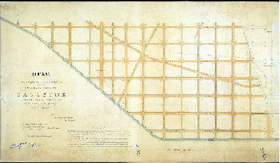Plan (alternate image), Plan exhibiting the curb heights, water courses and culverts in the Southern Section of Passyunk together with the location of certain streets made in pursuance of Act of Assembly passed June 21st 1839 and by Saml. H. Kneass, Civil Engineer. Approved by Commissioners October 21st 1840. Confirmed Decr. 12th 1840, 1840 Original size: 44 x 75 in. (estimated)
