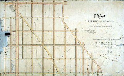 Plan (alternate image), Plan of the Third Section of the survey and regulation of the Twenty-first Ward of the City of Philadelphia [Ordinance Aug. 15, 1855; approved by Board of Surveyors Sept. 21, 1857; confirmed by Court June 11, 1860] Original size: 40 x 66 in. (estimated)