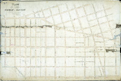 Plan (alternate image), Plan of grade regulation of the Sixth Section of the late Township of Blockley. [Resolution April 26, 1867; either survey returned or confirmation date: Dec. 21, 1867], 1869 Original size: 46 x 68 in. (estimated)