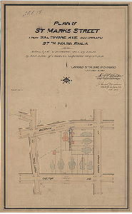 Plan, Plan of St. Marks Street from Baltimore Ave. southward, 27th Ward, Phil'a. [Ordinance July 9, 1897; confirmed Oct. 18, 1897], 1897 Original size: 12 x 19 in. (estimated)