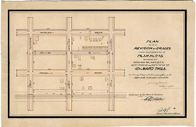 Plan, Plan of the revision of grades upon that portion of Plan No. 248 bounded by Woodland Ave., P.W. & B. R.R., Sixty-third St. and Sixty-fifth St., 40th Ward Phila. [Ordinance Nov. 27, 1899; survey returned Jan. 1900; confirmed Feb. 5, 1900] Original size: 16 x 24 in. (estimated)