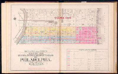 Map Index, Atlas of the City of Philadelphia, Central Business Property, Volume 2, 1896 Original size: 23 x 36 in. (estimated)