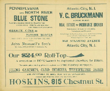 Ads, Street Atlas of Philadelphia by Wards, 1895 Original size: 17 x 21 in. (estimated) Free Library Image ID: MKAUAA00021