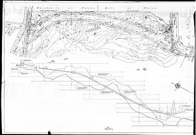 Plan, [No title. Plan showing topography and profile of University Ave. from Woodland Ave. and Vintage Ave. and vicinity. This plan correlates to a series of before and after photographs showing the extension of University Avenue through Woodlands Cemetery property.]
