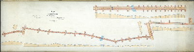 Plan (alternate image), Plan of the River Front Railroad from Laurel St. to Trenton Ave, approved August 1877 [Approved by Board of Surveyors August 20, 1877] Original size: 26 x 96 in. (estimated)