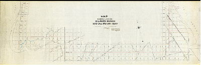 Plan (alternate image), Map showing location of Delaware Branch of Schuylkill River East Side R.R. Phila. Aug. 27th 1885. Calvin Whiteley Jr. Del. Original size: 33 x 100 in. (estimated)