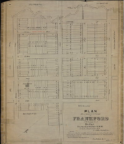 Plan, Plan of lots situate in the Borough of Frankford in the County of Philadelphia. The property of Charles Murphy. Surveyed as above and delineated Nov. 1849 by John Foulkrod Survr. Original size: 31 x 36 in. (estimated)