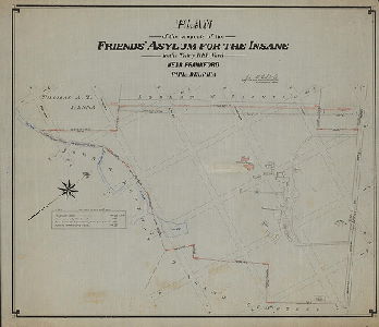 Plan, Plan of the property of Friends Asylum for the Insane in the Thirty-fifth Ward near Frankford, Philadelphia Original size: 41 x 47 in. (estimated)