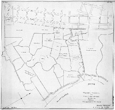 Plan, Plan of property in the Twenty-seventh Ward, Philadelphia, purchased by W. W. and N. W. Harkness, 1900 ca. Original size: 34 x 35 in. (estimated)