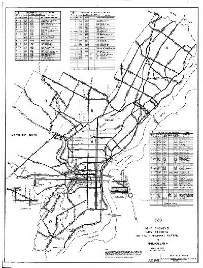 Plan, Map showing city streets on state highway system in Philadelphia. . City Plans Division, Bureau of Surveys and Design, Department of Streets, January 1961, revised July 1, 1963. , 1963 Original size: 36 x 48 in. (estimated)